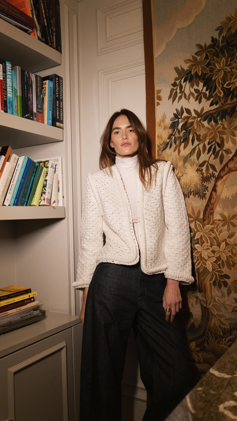 O Casaqueto Nonna Célina é uma reedição de uma das primeiras peças produzidas pela IELU e que foi o maior sucesso. Com modelagem classica e atemporal, feita em crochê manual, um rolotê imponente com bico nas extremidades atende ao estido clássico com toque de moda e atualidade.